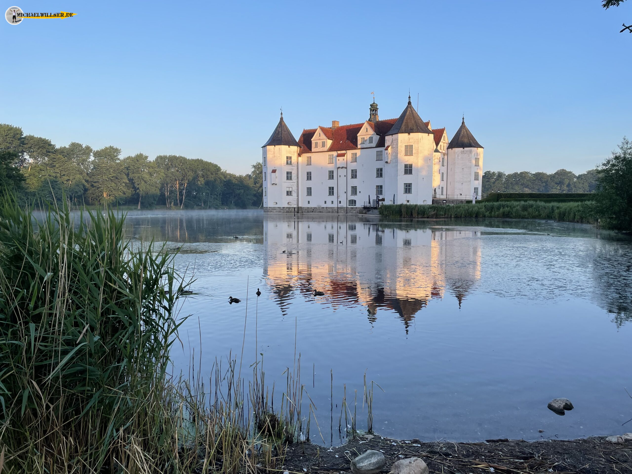 Es gibt nur wenige Tage im Jahr, wo das Schloß von dieser Seite von der Sonne angestrahlt wird. Ich kam an diesem Tag früh morgens von der Arbeit nach Hause und sah, wie der Nebel über den Teich waberte. Dazu perfektes Wetter. Die Gelegenheit konnte ich mir nicht entgehen lassen und so entstand dieses Foto, dass ein wenig abgewandelt auch die Startseite meiner Page ziert…